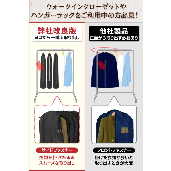 洋服カバーのファスナーを横に取り付けた”サイドファスナー”タイプです。
