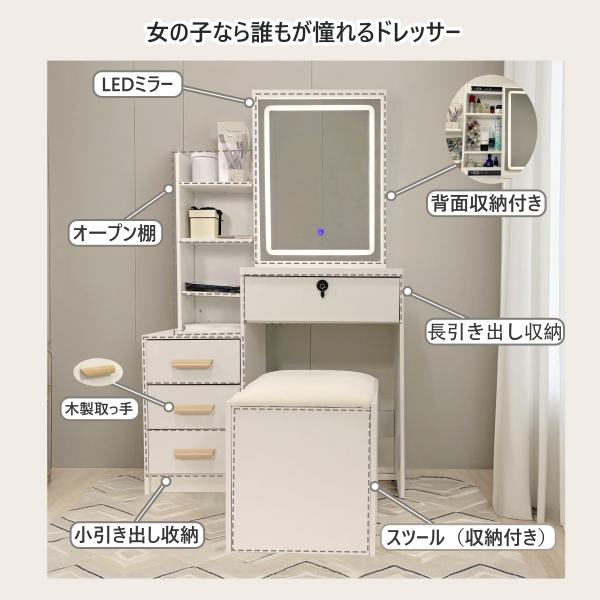ドレッサー オシャレ 北欧風 化粧台 コスメ台 女優ミラー 鏡台 LEDミラー お姫系 スツール付き 寝室 化粧テーブル 小さい化粧台 収納 ネイルサロン まつげサロン