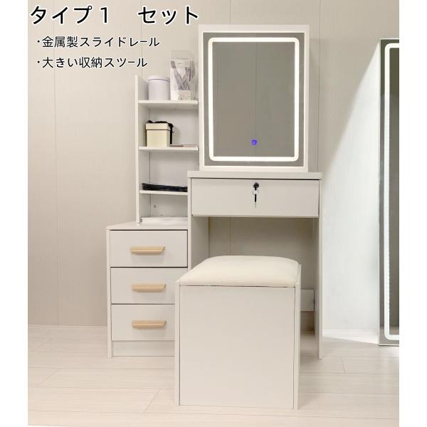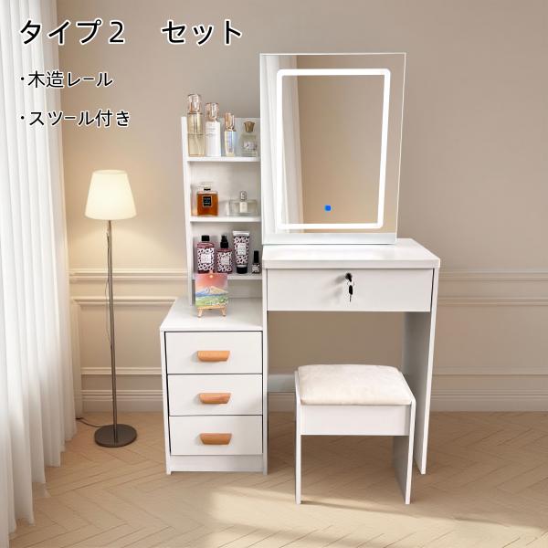 ドレッサー オシャレ 北欧風 化粧台 コスメ台 女優ミラー 組立 鏡台 LEDミラー お姫系 スツール 寝室 化粧テーブル 小さい化粧台 収納 ネイルサロン サロン103