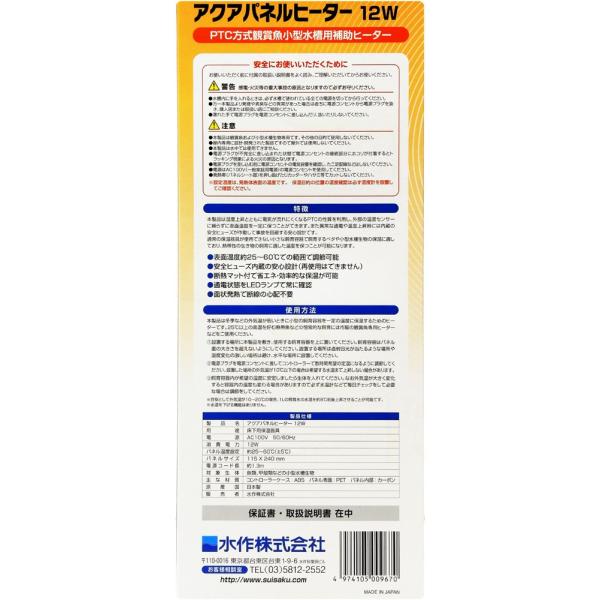 【全国送料無料】 水作 アクアパネルヒーター 12W 日本製