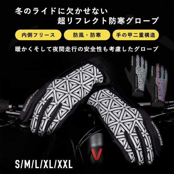 バイク グローブ 手袋 秋冬 フリース素材 反射 防風 防寒 保温 自転車 サイクルグローブ ロックブロス