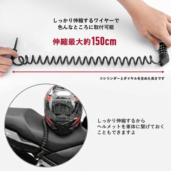 バイク 鍵 ワイヤー ロック ケーブル ダイヤル 4桁 150cm ヘルメット 盗難防止 地球ロック コンパクト ロックブロス
