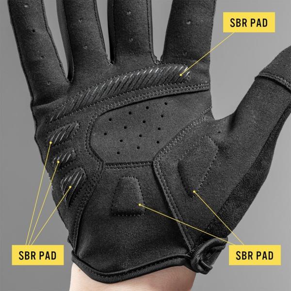 手のひらには衝撃吸収性に優れたSBRパッドを配置し、長時間の走行でも手や手首への負担を軽減します