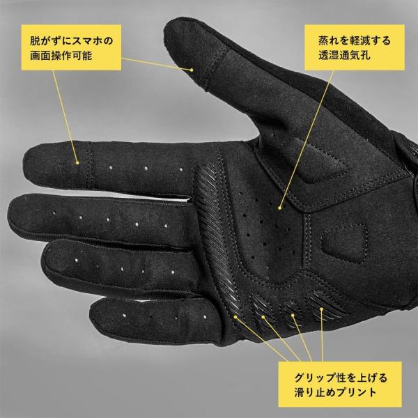 タッチパネル対応指先や汗拭き用タオル生地、夜間の視認性を高めるリフレクタープリントなど、通勤・通学から週末ライドまで、使いやすさに配慮した実用性の高い仕上がりです