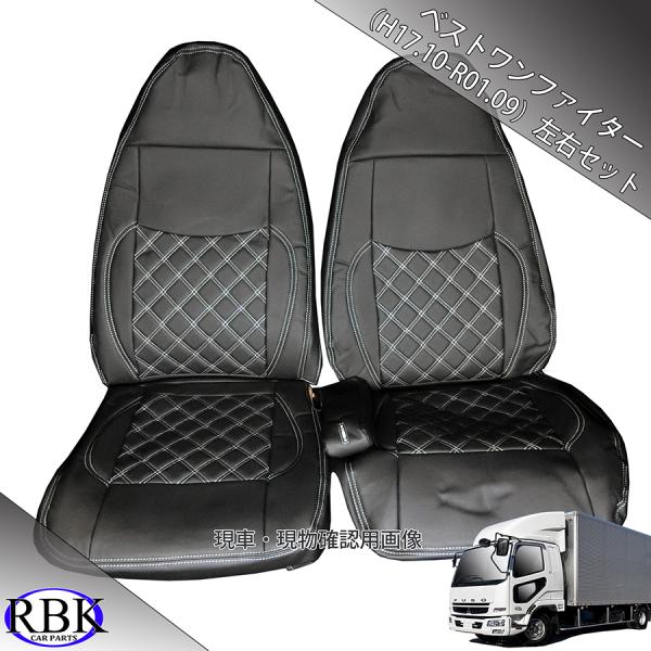 シートカバー ベストワン ファイター トラック 左右 セット 赤 青 白 黒 ステッチ 内装 部品 カスタム パーツ ふそう FUSO 三菱 フソウ 商用車