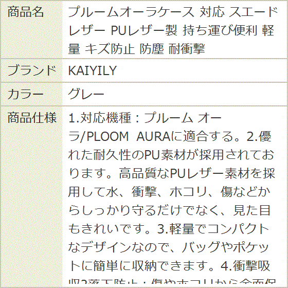 プルームオーラケース 対応 スエードレザー PUレザー製 持ち運び便利 軽量 キズ防止 防塵 耐衝撃(グレー)