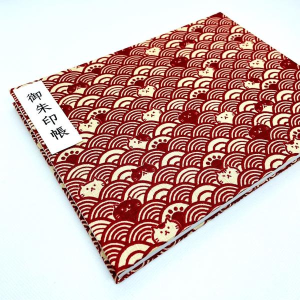 見開き御朱印帳 【波柄ネコちゃん】 御城印帳 蛇腹 書き置き 表題シール付き 送料無料 人気 和柄 おしゃれ かわいい 可愛い 見開き 蛇腹式
