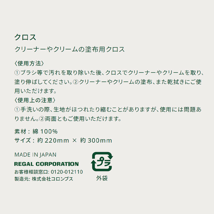 REGAL regal Regal リーガル リーガル TY36 お手入れ用クロス シューケア 靴みがき 靴磨き お手入れ クロス 布 綿 綿100% 拭き取り