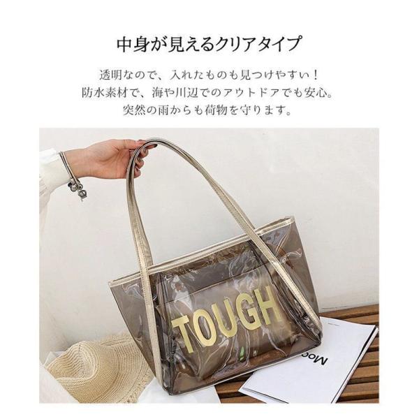 ビーチバッグ 大容量 夏プールバッグ クリア トートバッグ 透明 ポーチ付き ハンドバッグ クラッチバッグ 収納バッグ 大きめ マチ アウトド
