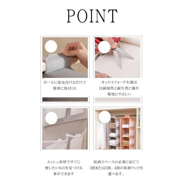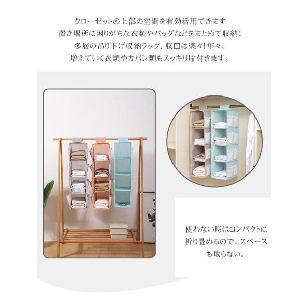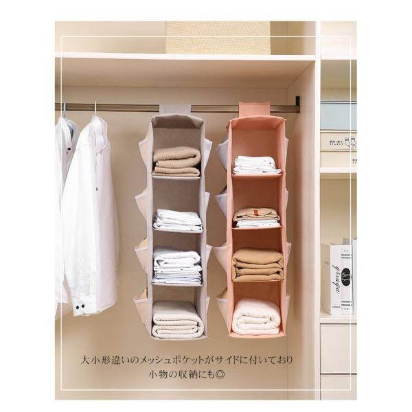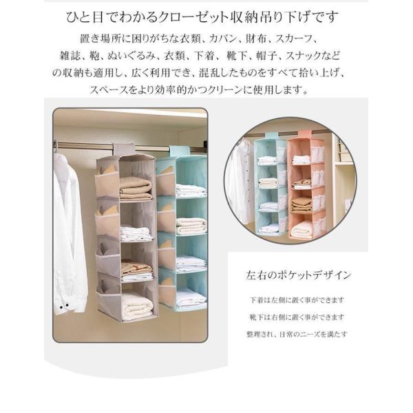 吊り下げ収納 衣類クローゼット 折りたたみ ポケット衣類下着収納 衣類 4段 ハンガー 収納 カゴ かご 衣類収納 収納ボックス 収納ケース