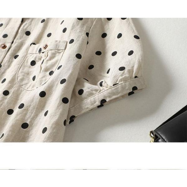 リネンシャツ ブラウス レディース ドット 水玉柄 半袖 シャツ リネン コットン 綿麻シャツ 大人 可愛い ナチュラル 森ガール 夏 トップス