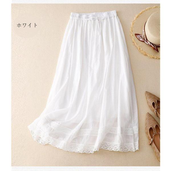 スカート レディース未使用 フレアスカート レース 裏地付き ロング丈 ロングスカート ウエストゴム ボトムス 夏 無地 カジュアル 体型カバ