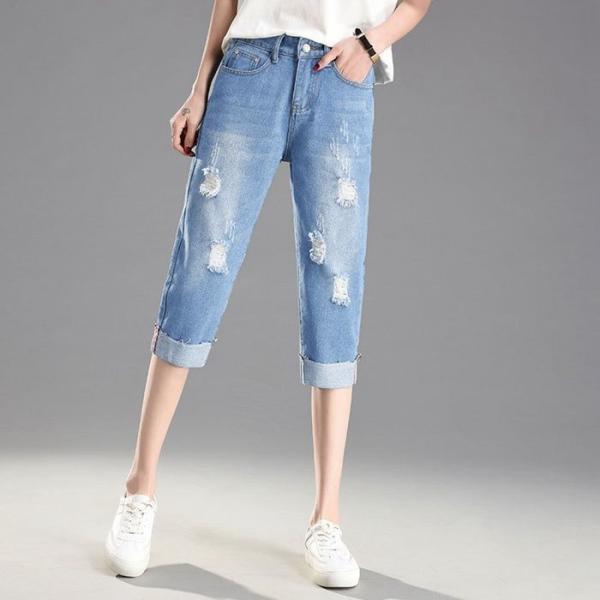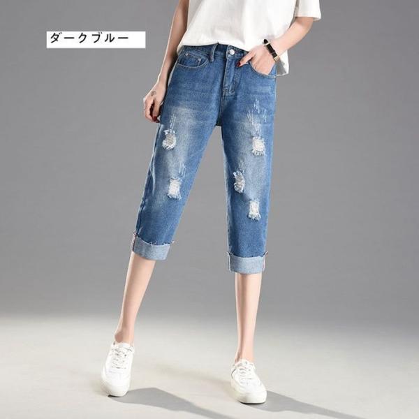 クロップドパンツ デニム レディース テーパードデニム ダメージジーンズ デニムパンツ ロールアップ ジーンズ ジーパン ズボン