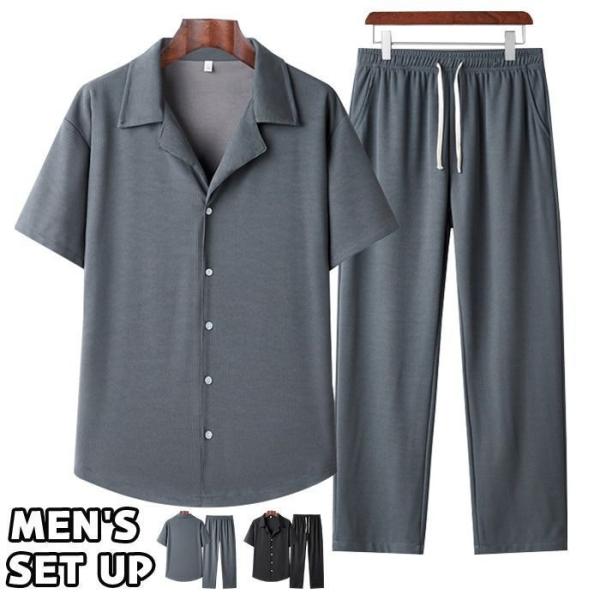 上下セット 大きいサイズ セットアップ 即購入OK メンズ 未使用 父の日 シャツ ロングパンツ ゆったり 快適 無地 薄手 夏用 夏 夏服 普段着