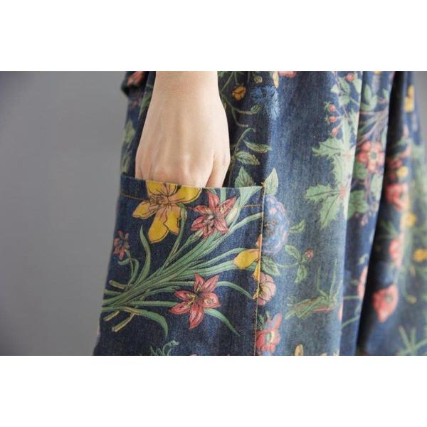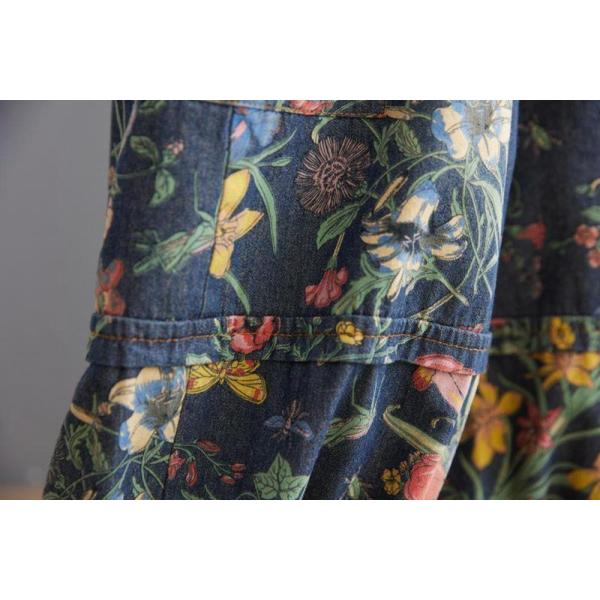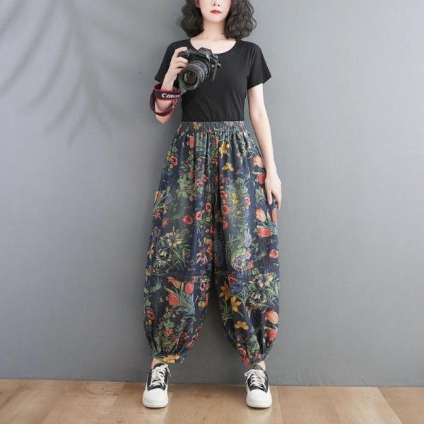 デニムパンツ レディース 未使用 花柄 バルーンパンツ 夏 ウエストゴム 総柄 デニムワイドパンツ 大きいサイズ ゆったり 9分丈 ジーンズ コ