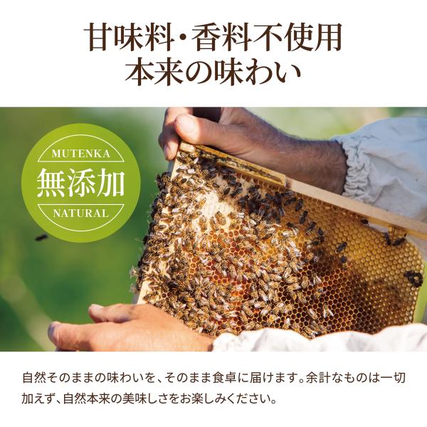 甘味料や香料を加えていないため、はちみつ本来の味をお楽しみいただけます。