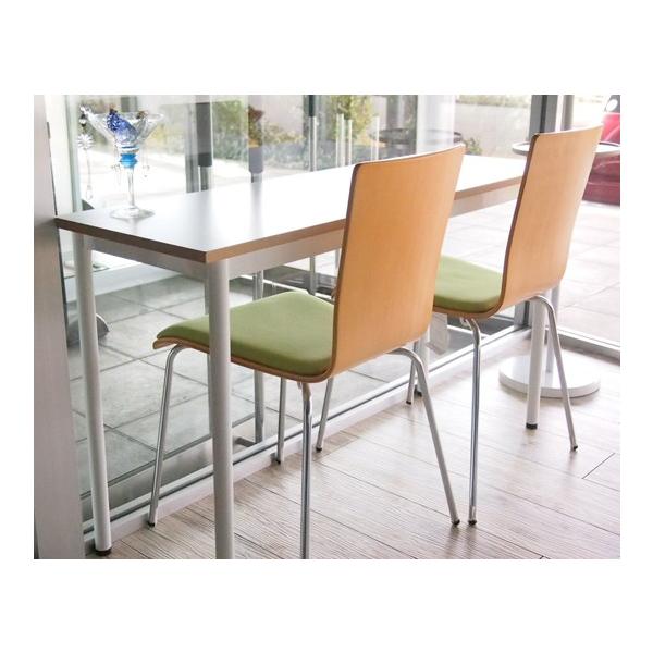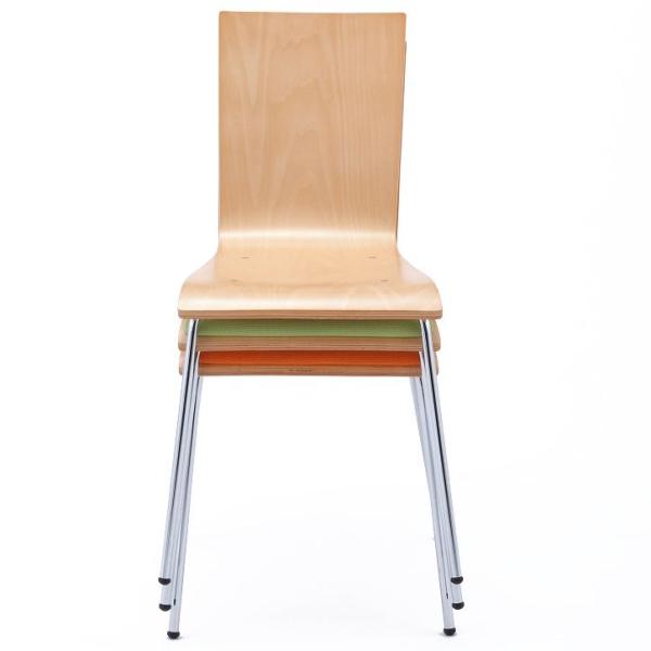 ウレタンパッドで座り心地のよいプライウッドチェア。ナチュラルウッドに明るいグリーンのシートで爽やかな印象です。シンプルで飽きのこないデザイン。1脚単位での販売です。4脚までスタッキングできます。