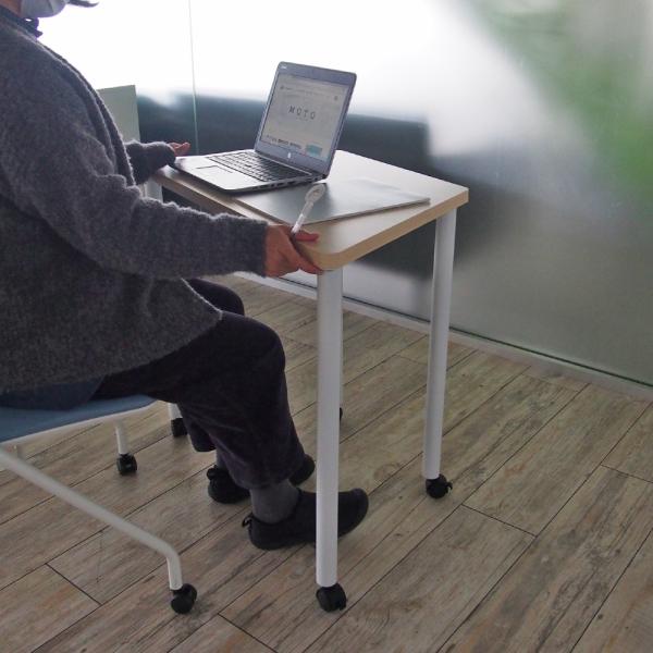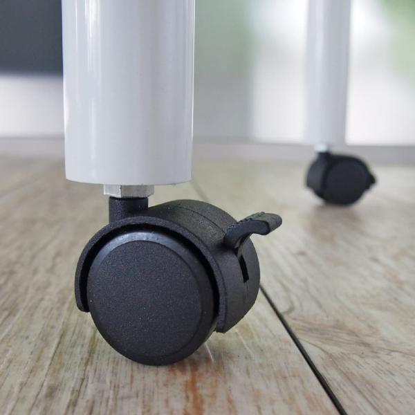 material (素材) : 天板:低圧メラミン樹脂化粧木質ボード、PVCエッジ 脚部:スチール(粉体塗装)キャスター:ナイロン