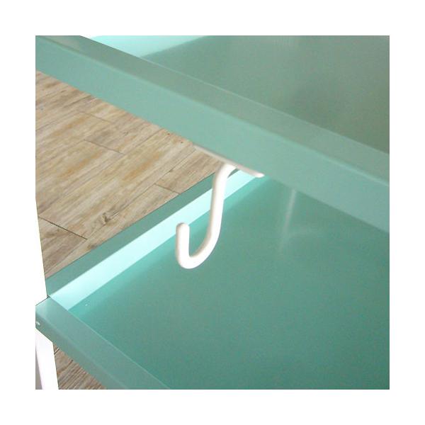 ハンドルとフック(1個)がついています。キャスター4個すべてにストッパーがついています。