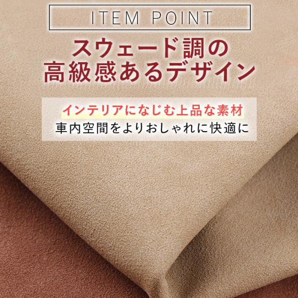 シンプルながら上品なスウェード調素材を採用。車内インテリアになじみ、違和感なく使えます。