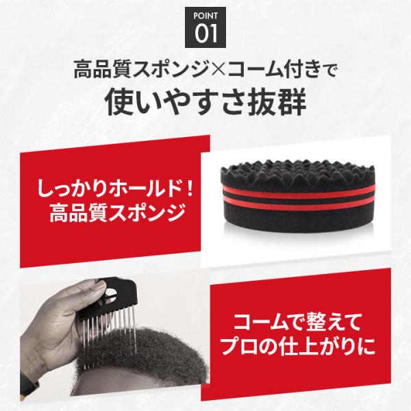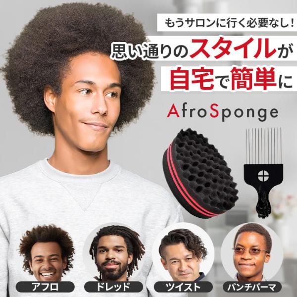 アフロスポンジ コーム付き ドレッド カール パンチパーマ ヘアスポンジ メンズ レディース 髪型スタイリング ツイスト 三つ編み ヘアセット ヘアアレンジ