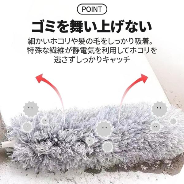 ・先端のモップ部分が自在に曲がるので、低い場所からは見えないエアコンの上や照明の傘までスッキリ♪