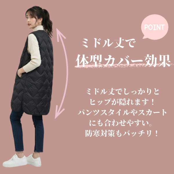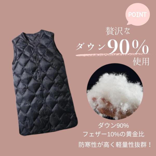 ダウンベスト ロング丈 インナーダウン レディース あったか 防寒 細身 防寒ベスト 軽量 着痩せ 体型カーバ 暖かい 秋 冬 真冬 りんごのほっぺ