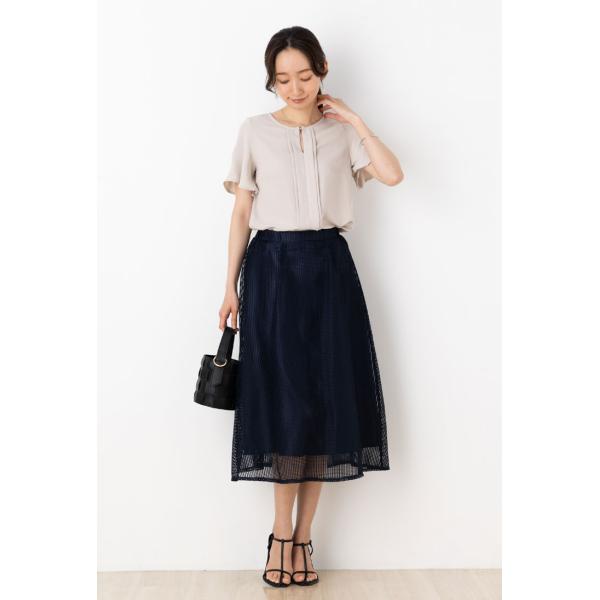 清涼感のあるメッシュレース素材のスカートです。タックで優しく広がる、シンプルなフレアシルエットに仕上がっています。カットソーを合わせてフランクに、ブラウスを合わせてフェミニンなスタイルが楽しめる一枚。