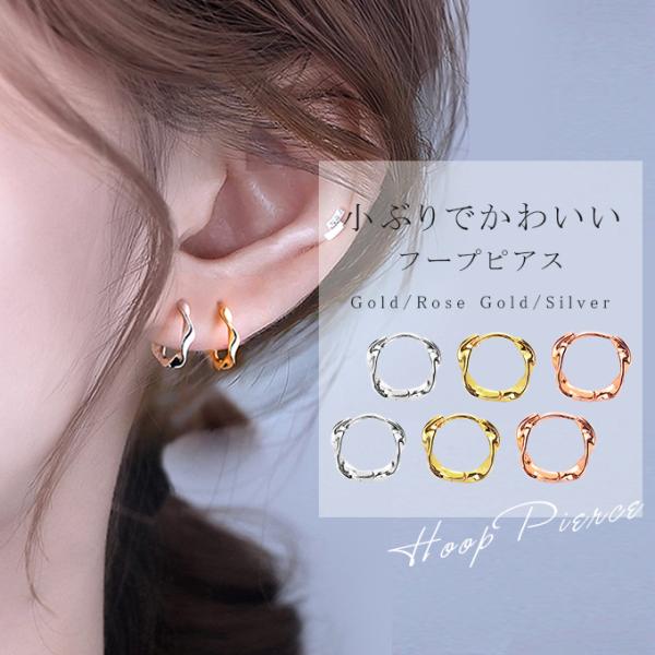 フープピアス ピアス つけっぱなし 小さめ フープ シルバー ゴールド ニッケルフリー シンプル 大人 上品 キレイめ 高見え ねじれピアス ギフト プレゼント