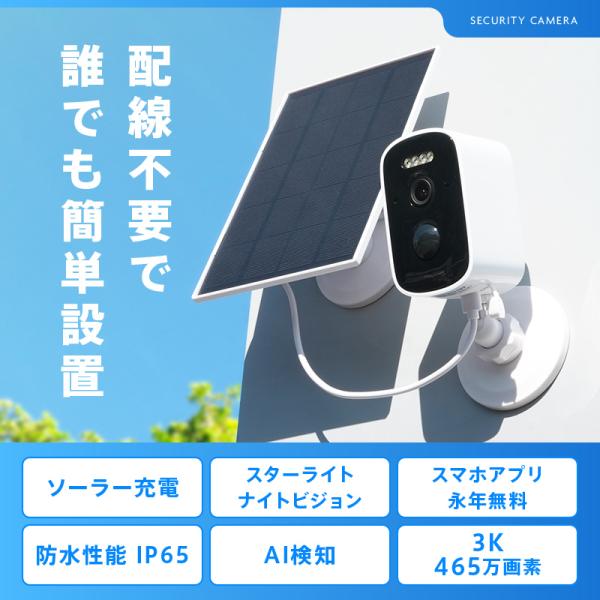 配線不要 マグネット設置式 防犯カメラ 双方向通話 AI検知 工事不要 ソーラー スマホ連動 遠隔操作 WiFi 465万画素 アラーム