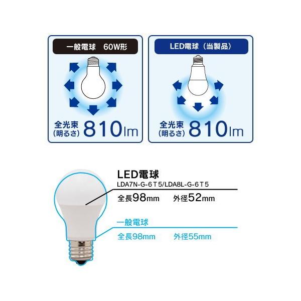アイリスオーヤマ LDA7N-G-6T5 LED電球 一般電球形 60W相当 昼白色相当 広配光 LDA7NG6T5