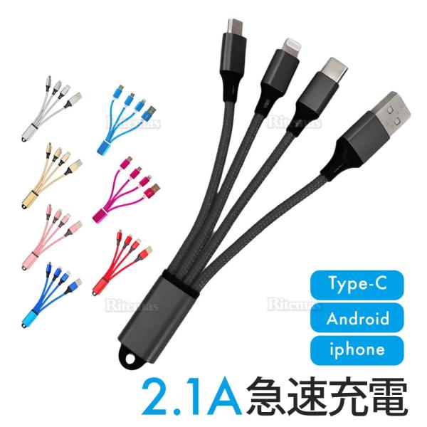 3in1 充電ケーブル iPhone ケーブル Type-Cケーブル Micro USB 小型 ストラップ 充電 Android microusb iPhone13 iPhone12 Android Xpeira Galaxy