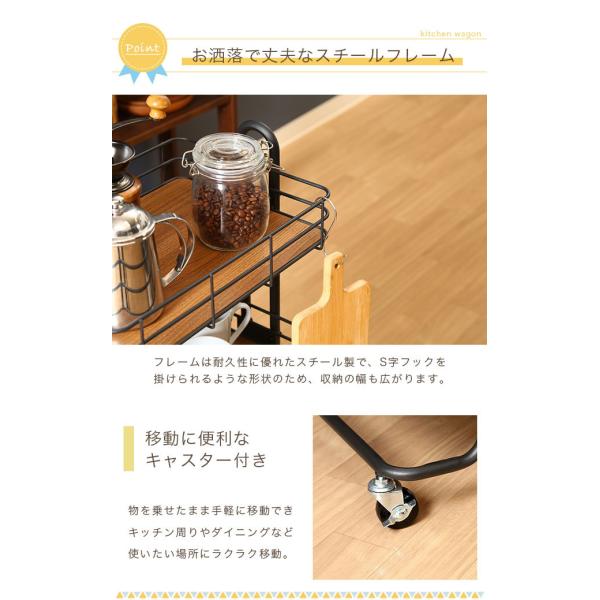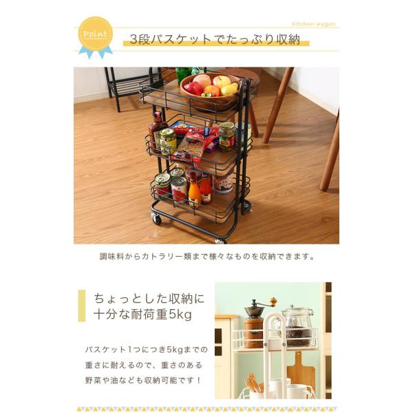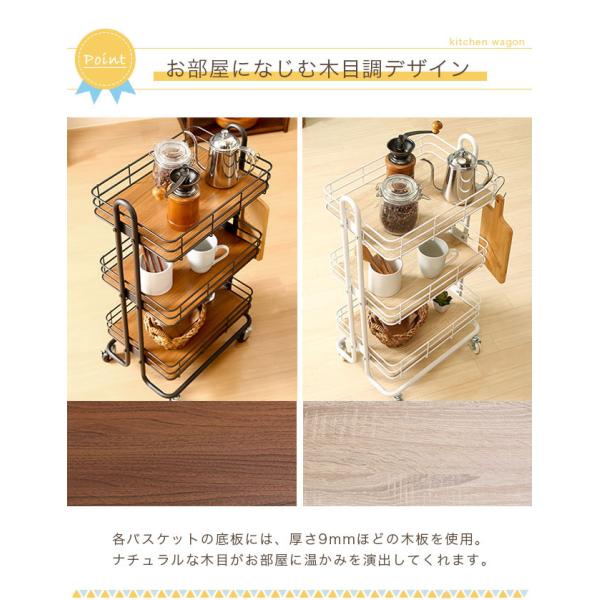 キッチンワゴン 幅45 スチール製ワゴン 3段 キャスター付き 木目 木製 おしゃれ スリム 隙間収納 キッチンラック 北欧 キッチン収納 新生活 黒 白
