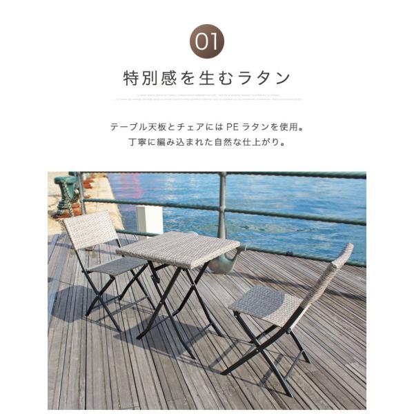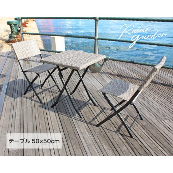 ガーデン テーブル 3点 セット 折りたたみ ラタン調 ガーデンテーブルセット ガーデンセット ベランダ 屋外 アウトドア テラス バルコニー 庭 ウッドデッキ 2人用 2人掛け 正方形 幅50cm コンパクト 省スペース ミニ 雨ざらし 雨に強い 激安 安い アウトレット価格 おしゃれ カフェ風