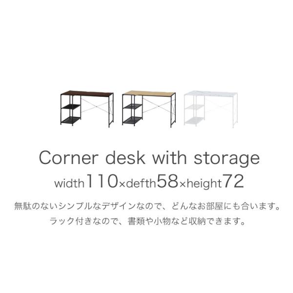 パソコンデスク オフィスデスク 省スペース 幅110cm 奥行58cm 収納付き PCデスク ワークデスク 勉強机 大理石調 木目調 学習机 書斎机 事務机 大人 木製 ラック付き ブラウン ナチュラル ホワイト おしゃれ シンプル 人気 在宅ワーク 在宅勤務 アウトレット価格