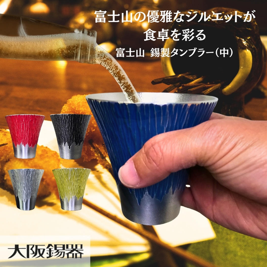 【大阪府/大阪錫器】fut-2-b 飲み物の味をまろやかにする錫製 富士山 タンブラー(中)/青・朱・白・黒・黄 爆買