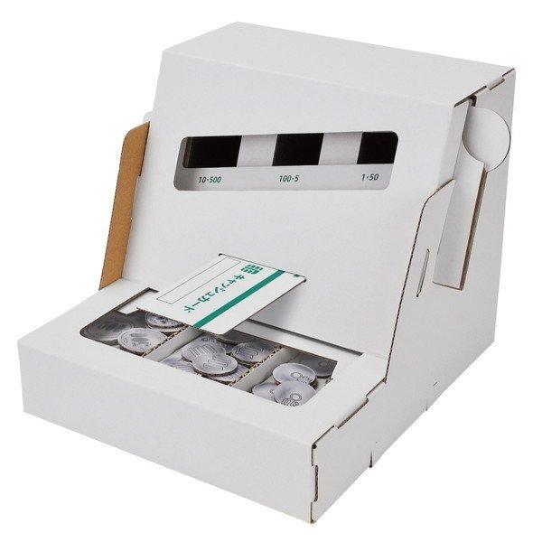お金を入れると自動的に仕分けされ、カードをさすとお金が取り出せます。