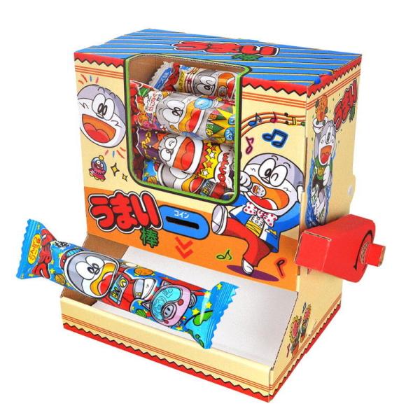 うまい棒をセットして、レバーを手前に引くと、うまい棒が出てくるよ!