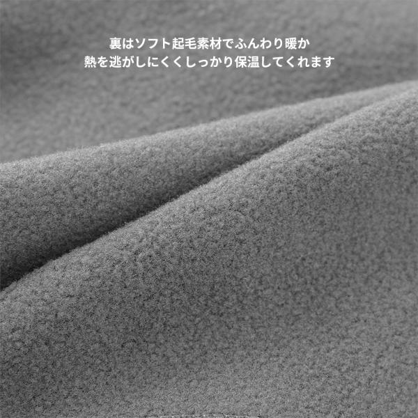 ・表地には防風・防寒素材を、裏地には保温性効果の高いソフト起毛素材のフリースを使用