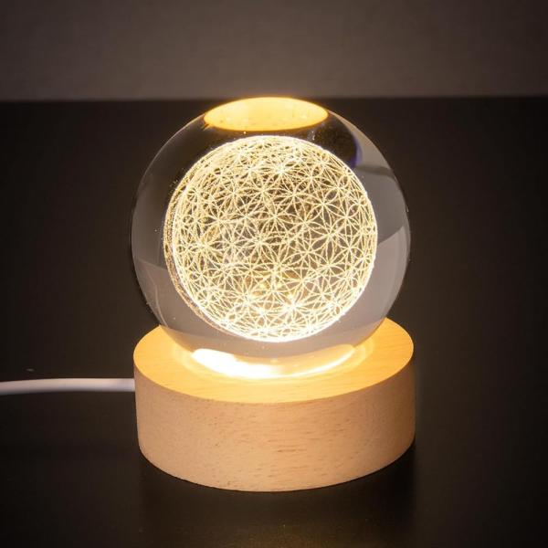 フラワーオブライフ 丸玉 LEDライト 置物 テーブルランプ 寝室 木製LED台座 K9 クリスタルガラス ボール ボウル 人工水晶 玄関 空間 浄化 インテリア DANNY LIB