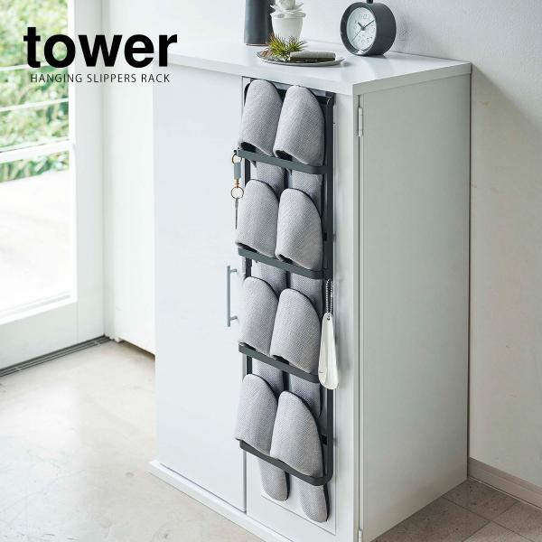 [ 下駄箱扉&引っ掛け式スリッパラック タワー ] 山崎実業 tower スリッパラック 玄関 スリッパ 収納 引っ掛け 壁掛け 玄関収納 靴箱 4894 4895