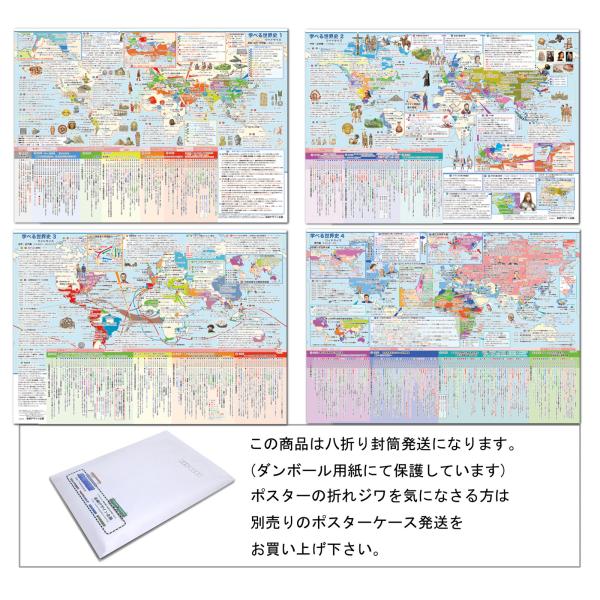 「学べる世界史 ワイドサイズ お風呂用 」4枚セット【封筒発送】 お風呂ポスター 中〜高校向け歴史ポスター