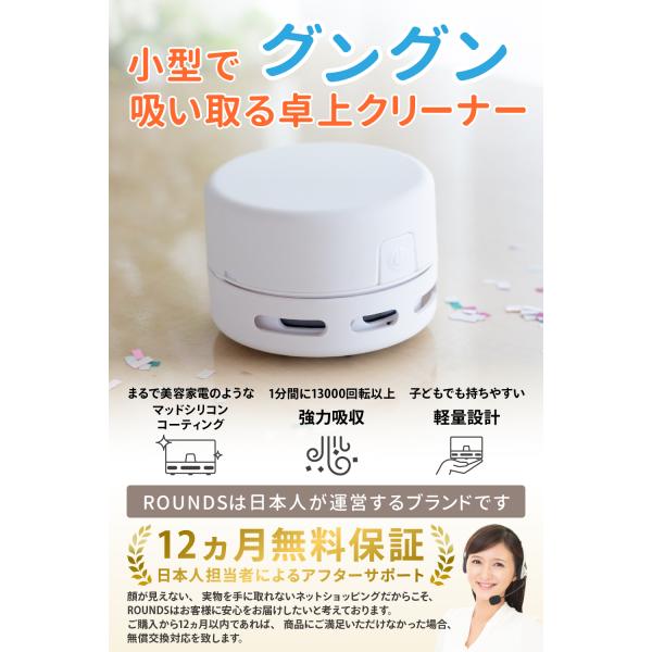 ROUNDS 掃除が楽しくなる卓上クリーナー 掃除機 ミニクリーナー 机上クリーナー マッドシリコンコーティング 乾電池式