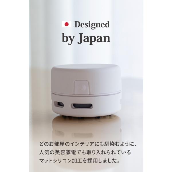 卓上クリーナーの表面にはインテリアに馴染むマットシリコンコーティングのデザインを採用。まるで美容家電のようなシンプルでおしゃれな空間を演出します。子どもから大人まで幅広い世代のご使用を想定したデザインに仕上げています。