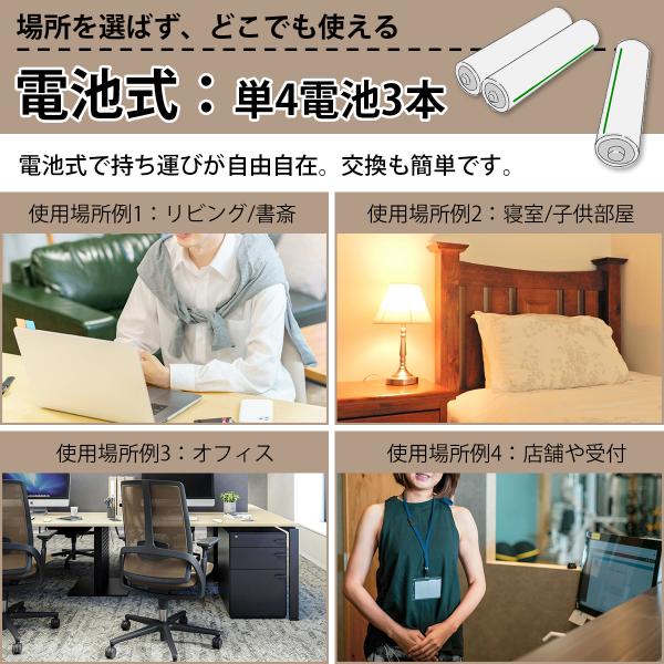 電池式なので持ち運んでどこでも置くことができます。交換も簡単です。