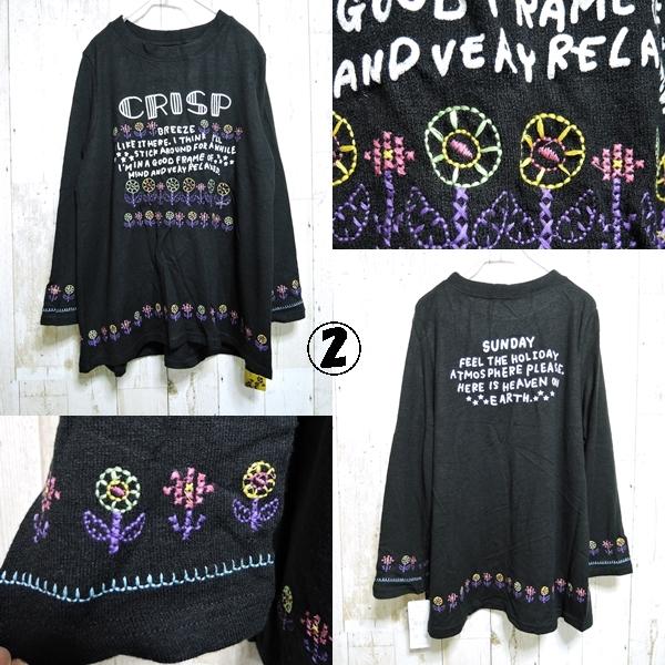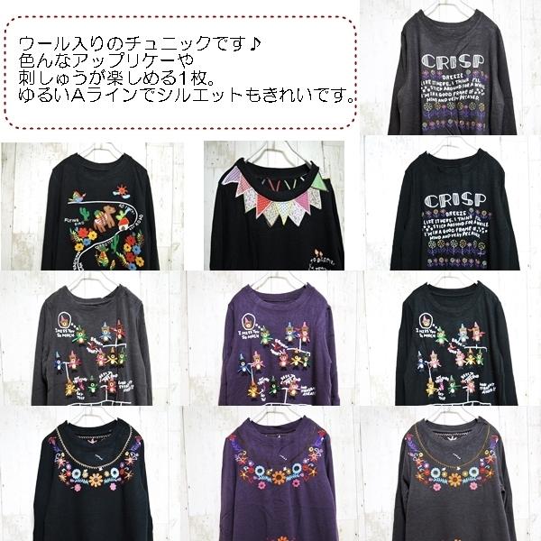 チュニック カットソー トップス ロング丈 ウール入り レディーストップス M〜LL アップリケー