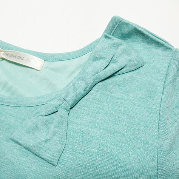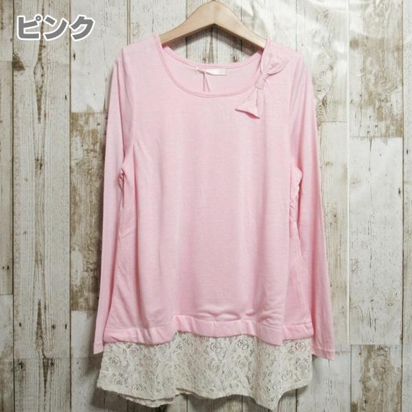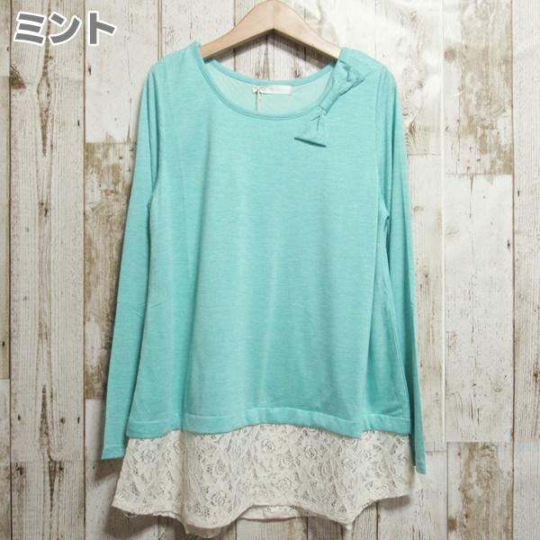 チュニック 裾レース SHEENA DEL RAY レディース トップス カットソー 長袖 ロンT リボン ピンク アイボリー ミント シーナデレイ