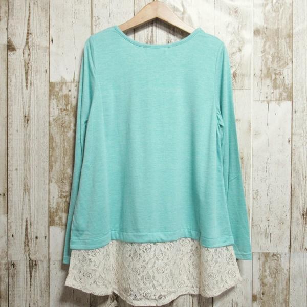 SHEENA DEL RAY シーナデレイ チュニック チュニック丈 レディーストップス レディース トップス カットソー 長袖 ロンT 裾レース レース りぼん リボン ピンク アイボリー ミント
