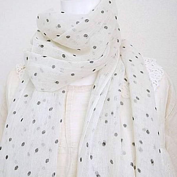 ドット柄 ストール コットン100% 紫外線対策 B品 アウトレット品 送料無料