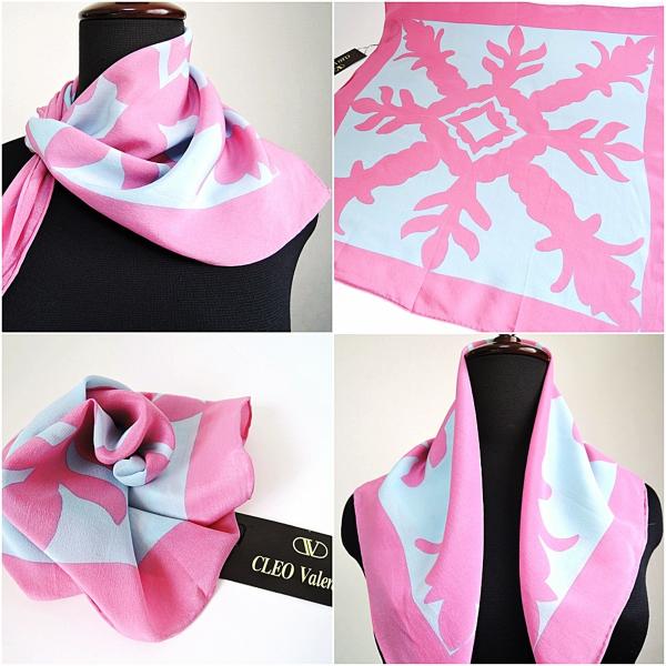 SALE 95%OFF CLEO Valentino ハワイアンキルト柄 シルクスカーフ ミニスカーフ 正方形 バッグスカーフ リボンスカーフ ツイリースカーフ